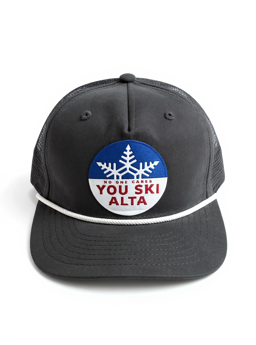 Fresh vibes meet classic ski–bum attitude. This YOU SKI ALTA rope hat is built for bluebird days, lodge beers, and anyone who still believes powder should be earned, not handed out.